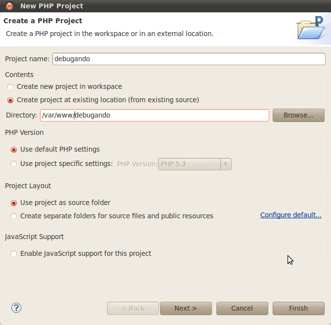 Crear un nuevo proyecto PHP en Eclipse PDT
